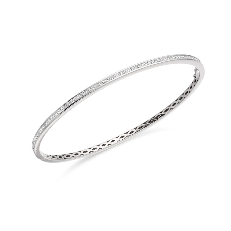 18ct white gold bangle consisting of 2.25 carats of diamonds. Round brilliant cut diamonds in a micro-claw setting.